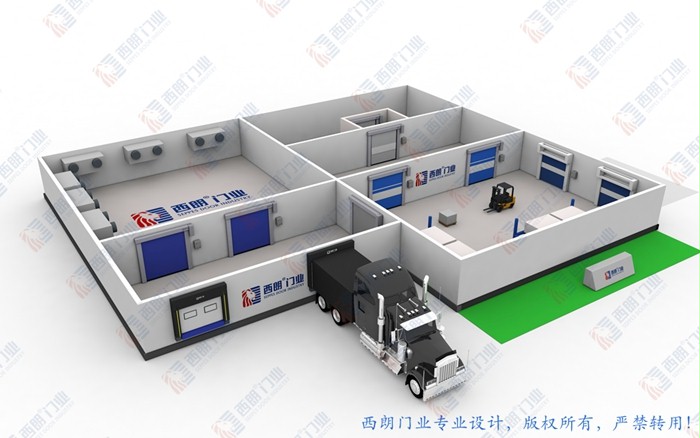 上图为:西朗门业工业门与物流设备方案效果图