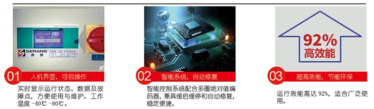 ①人机界面,可视操作 ②智能系统,自动修复 ③超高效能,节能环保
