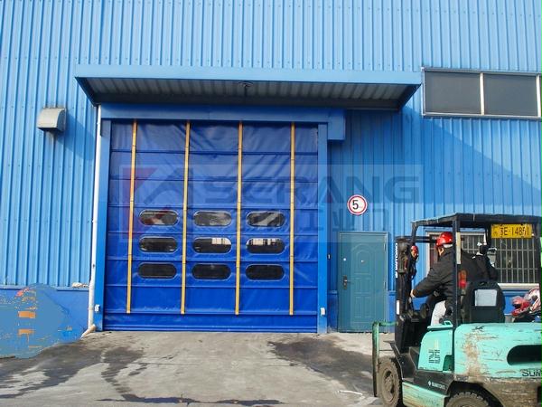 西朗门业生产的背带式快速堆积门,采用折叠式提升方式和多条内置式横向抗风杠杆,其风压可以均布于门帘整体,其抗风性能远高于普通滚筒式快速卷门,特别适合于物流通道,和大面积的洞口。插入式门帘更容易拆卸,维护更加方便。