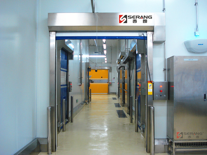 USU304不锈钢快速门用于披萨食品制造工厂内高洁净车间。