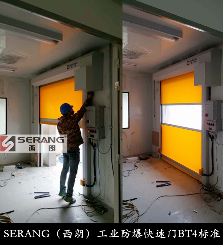 【西朗讯】2017年3月1日,西朗门业(苏州)有限公司开发生产的防爆等级ExibⅡBT4工业快速卷帘门,在上海和常州两个项目同时进行安装调试。防爆型快速门为二区防爆工厂车间进出专用特种门,可以快速频繁开关,具有隔温防尘的功能,其防爆型驱动电机、防爆型控制箱和专业级防爆线管及五金组件,并配套防爆型按钮开关和防爆红外线安全保护装置,构成了完事的BT4等级防爆工业门装备。