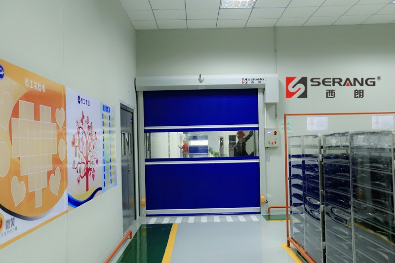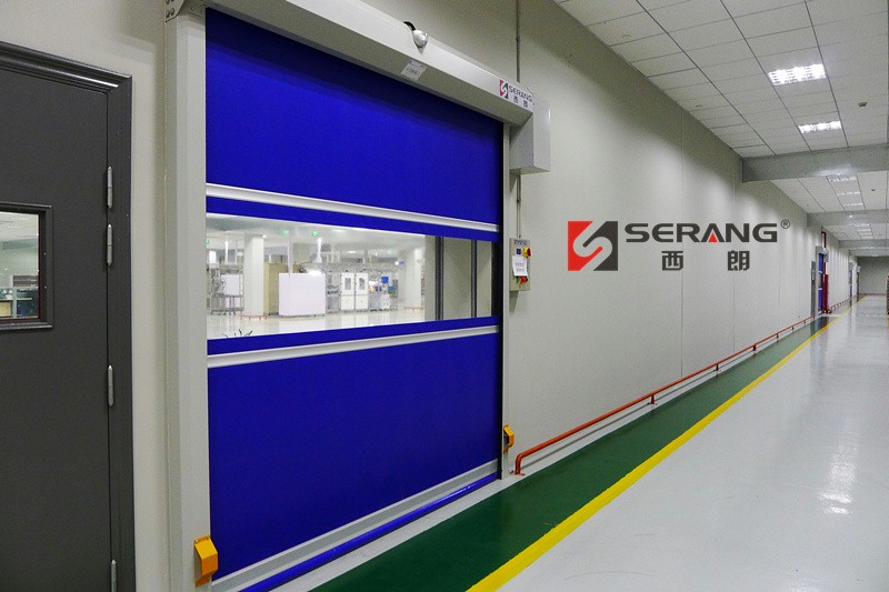 下图:高洁净区配合洁净室、风淋室使用的西朗工业快速门,标准化生产车间每一个出入口都应配备西朗工业快速门。