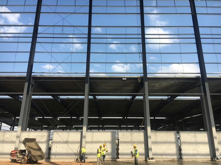 上图为:工厂钢结构厂房施工图片