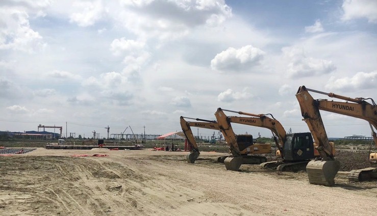上图为:完工交付的新工厂正式投入使用