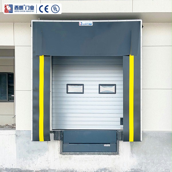 西朗机械式门封帘板采用双层聚酯单纤维弹性强度织物,表面PVC涂层,侧翼两边采用反光黄色引导条,边框采用铰链式连接抗挤压,顶部框架呈倾斜面便于排水,门罩由前架,后架和连接臂组成,整体框架经过耐腐蚀的镀锌处理,表面采用经过阳极氧化处理的铝合金型材固定和装饰,美观大方。
